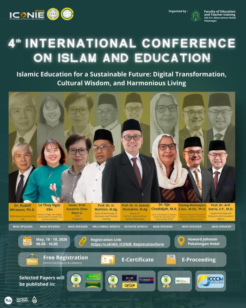 The Faculty of Education and Teacher Training, UIN K.H. Abdurrahman Wahid Pekalongan proudly presents the 4th International Conference on Islam and Education (ICONIE 2026).